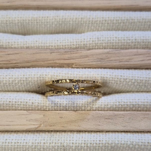 Chic et intemporelle, la bague martelée double rang de Nounie Store est l’alliance parfaite entre élégance et originalité.