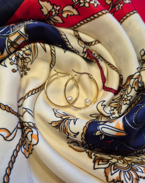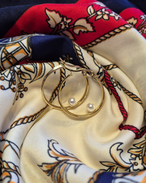 Boucles d’oreilles créoles en acier inoxydable avec une perle nacrée.