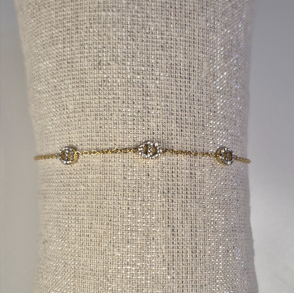 Laisse-toi séduire par ce bracelet raffiné en acier inoxydable doré, sublimé par trois cercles délicatement pavés de strass étincelants. Sa finesse et son éclat en font un bijou à la fois discret et luxueux, parfait pour toutes les occasions — du quotidien à une soirée chic.
