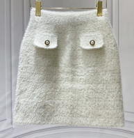 Apportez une touche de douceur et d’élégance à votre garde-robe avec cette jupe courte en maille duveteuse blanche. Son tissu texturé et moelleux procure une sensation de confort absolu tout en offrant un style chic et raffiné. La coupe légèrement ajustée met en valeur la silhouette sans compromettre le confort.