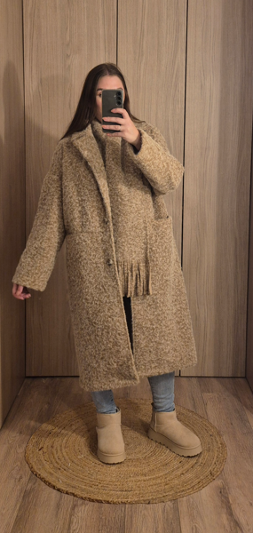Ce manteau long est la pièce élégante et cocooning indispensable pour affronter la saison froide avec style. Confectionné dans une matière douce et texturée effet laine bouclée, il apporte chaleur et confort tout en offrant une silhouette chic et moderne.