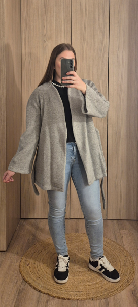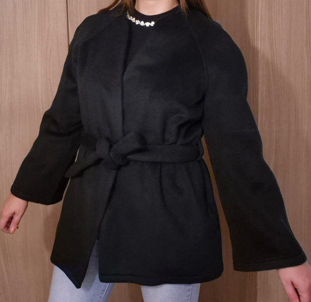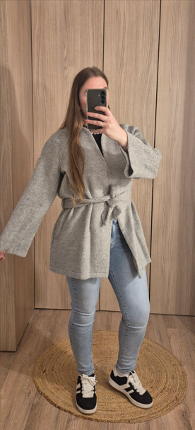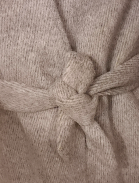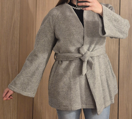 Manteau kimono en tissu doux avec coupe ample et confortable. Ceinture à nouer à la taille pour une silhouette structurée. Parfait pour un style élégant et décontracté.